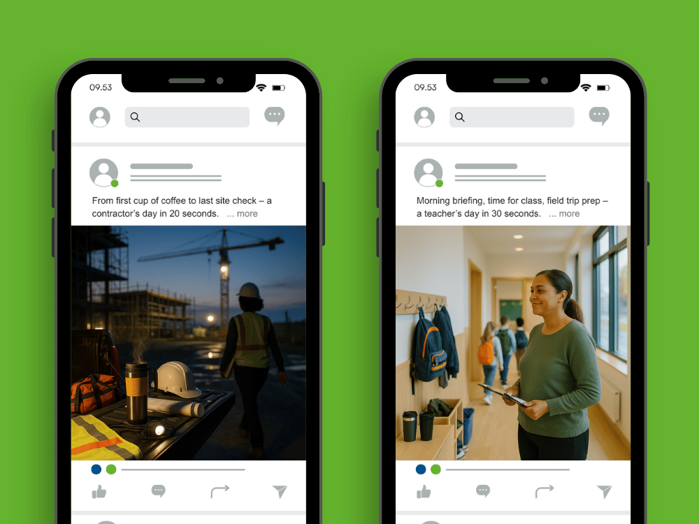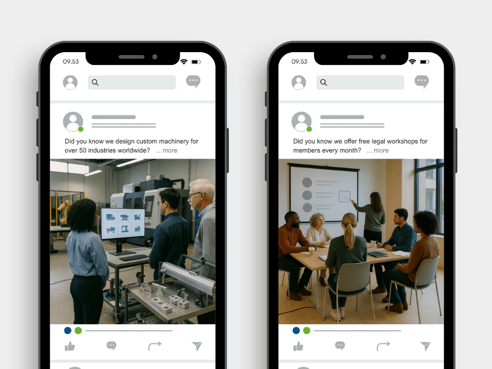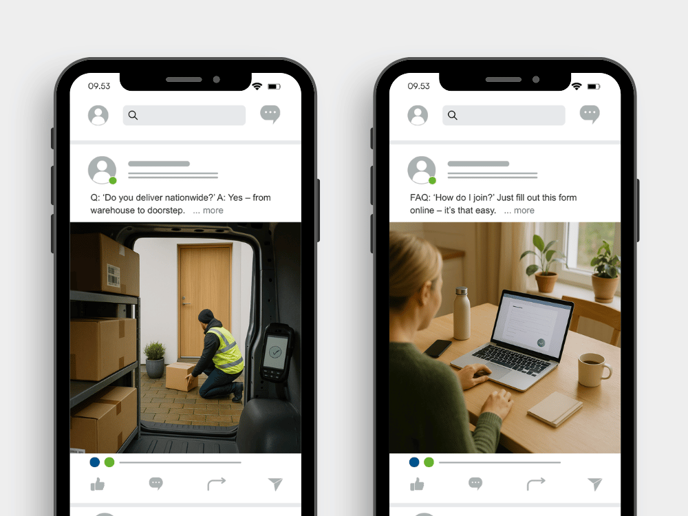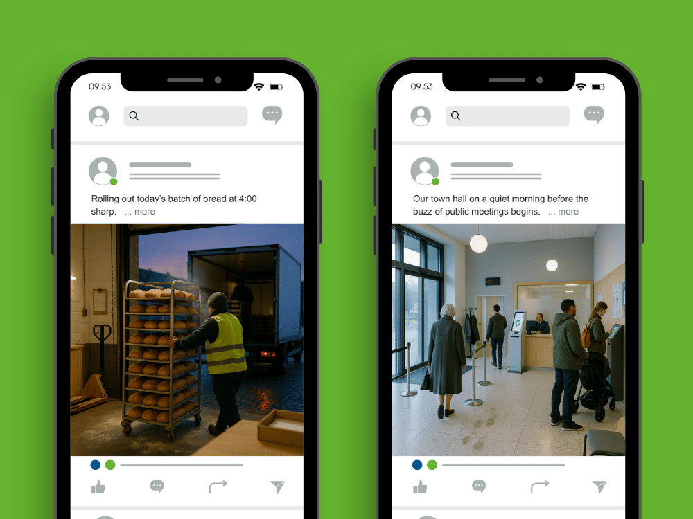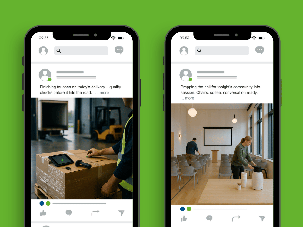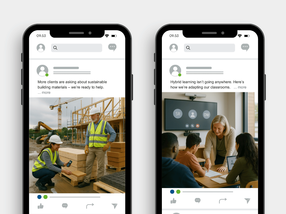 Nota sobre los ejemplos: Las imágenes mostradas en los ejemplos de publicaciones en redes sociales son marcadores generados con IA. Cuando empieces a probar estas ideas, utiliza tus propias fotos o vídeos para mantener la autenticidad y coherencia con tu marca. Si has completado recientemente un proyecto con nosotros, ya dispones en MySite de una biblioteca de imágenes (y quizá también de vídeos) que puedes utilizar para tus publicaciones en redes sociales.