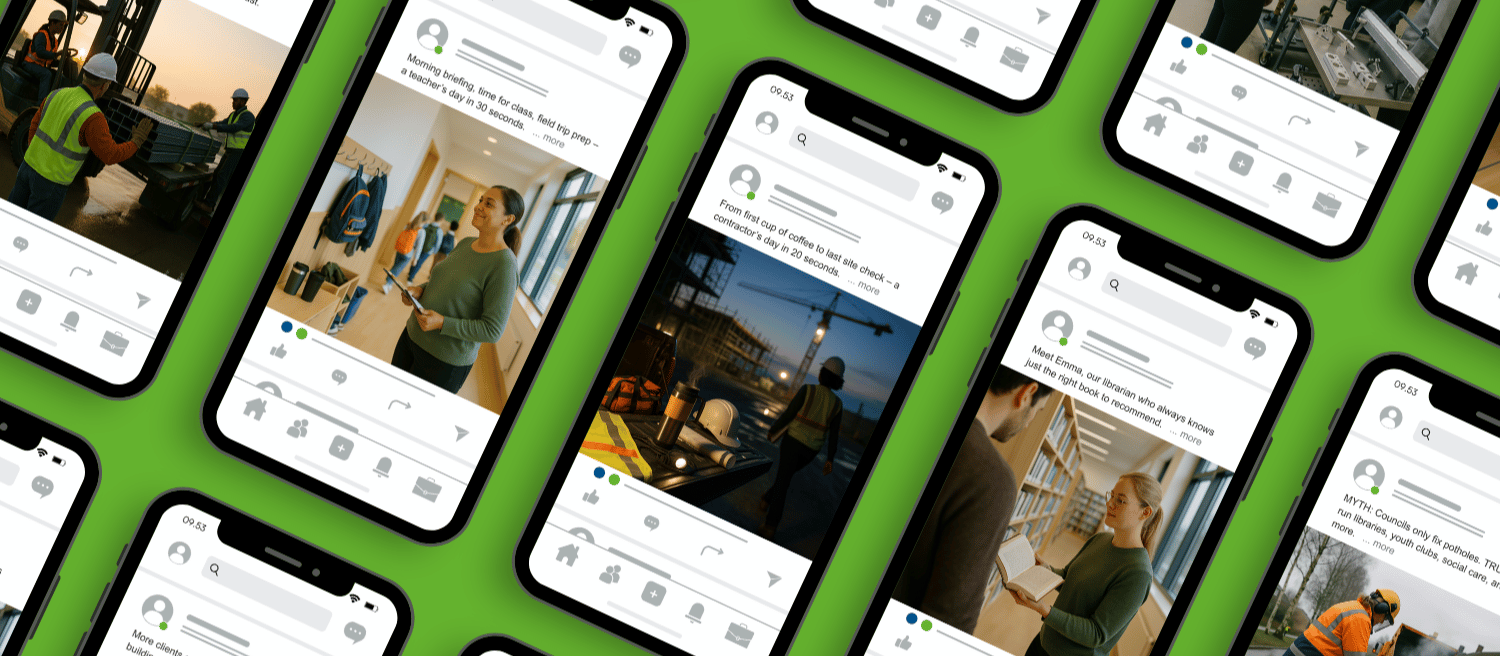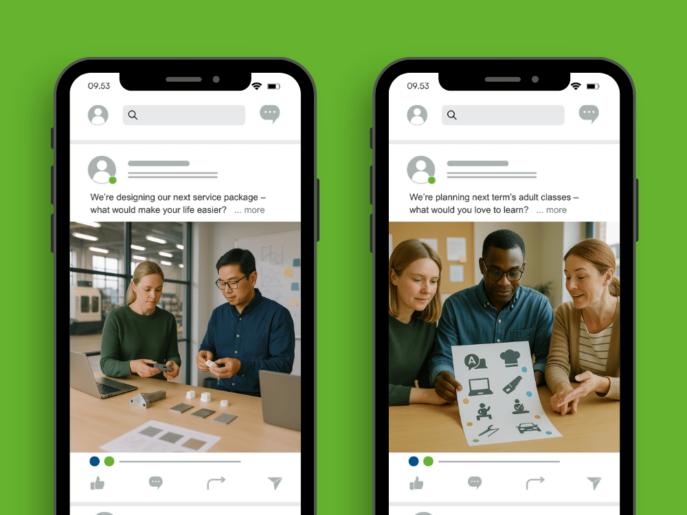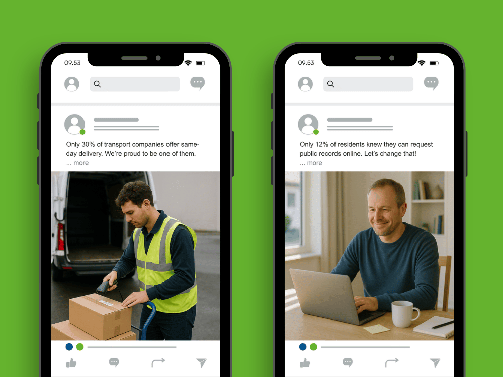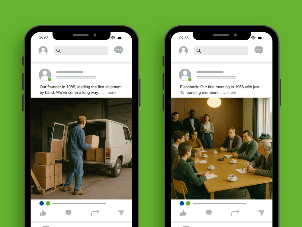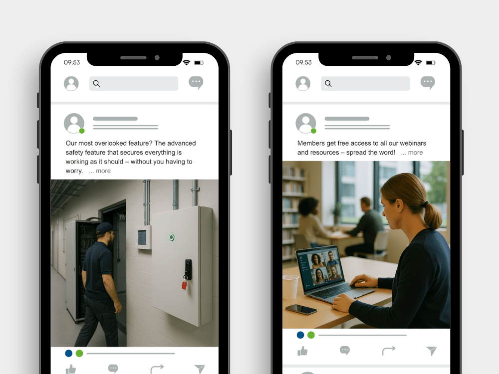 Nota sobre los ejemplos: Las imágenes mostradas en los ejemplos de publicaciones en redes sociales son marcadores generados con IA. Cuando empieces a probar estas ideas, utiliza tus propias fotos o vídeos para mantener la autenticidad y coherencia con tu marca. Si has completado recientemente un proyecto con nosotros, ya dispones en MySite de una biblioteca de imágenes (y quizá también de vídeos) que puedes utilizar para tus publicaciones en redes sociales.